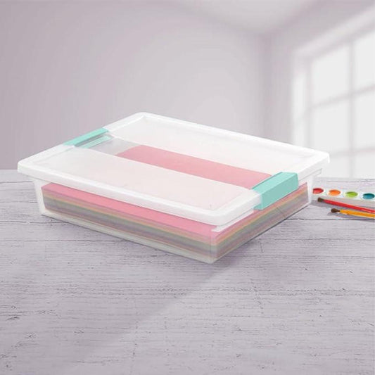 Sterilite 3 Qt. Plastic Small File Clip Box Storage Tote Container in Clear with Lid