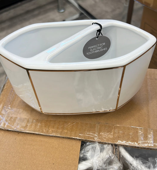 Art Deco Double Tooth Brush Holder W Line - Gold