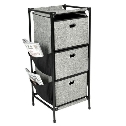Simplify 3 Tier Nonwoven Storage Drawers with Side Pockets in Black