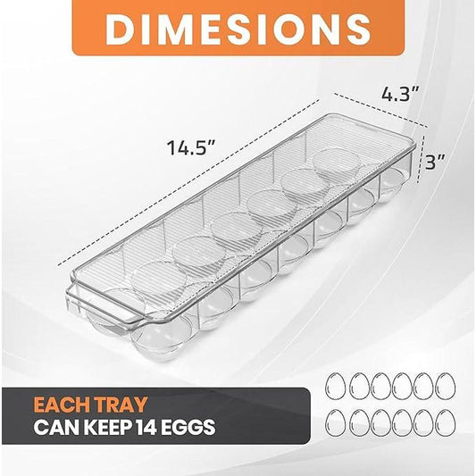Refrigerator Egg Container - 14-Egg Holder with Lid, Handle, and Storage Tray