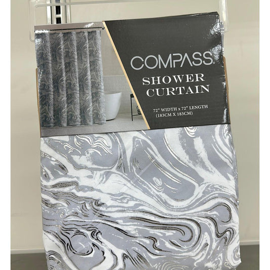 COMPASS Waterproof Shower Curtain with Grey Abstract pattern (183CM X 183CM)