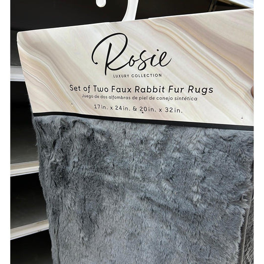 Rosie 2pc Rabbit Fur Rug Charcoal