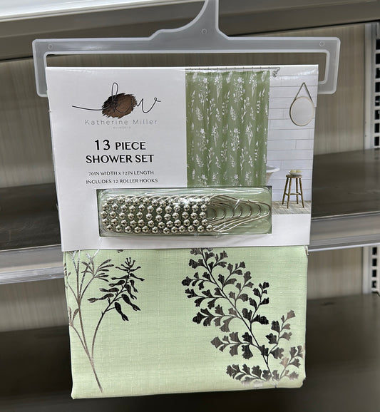 13 PIECE SHOWER SET 70IN WIDTH × 72IN LENGTH INCLUDES 12 ROLLER HOOKS