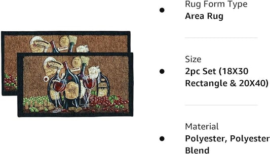 Bordeaux Wine 2pc Kitchen Rug Set 16x24 Rectangle and 20x34 Rectangle