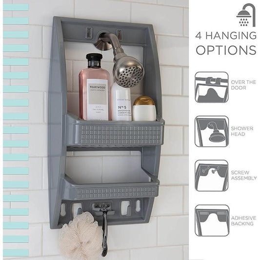 Bath Bliss Multi-Option Shower Caddy - Over-the-Showerhead, Adhesive Backing, Screw Mount, Grey - Organize with Large Bottle Holders, Razor & Loofah Hooks