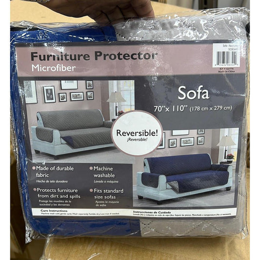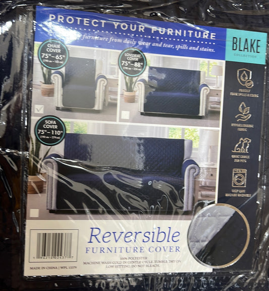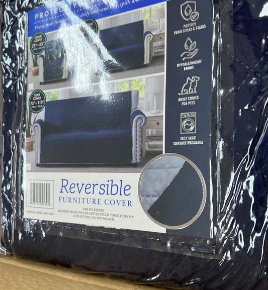 Linen Store Quilted Reversible Microfiber Furniture Protector With Strap - Aqua/Navy