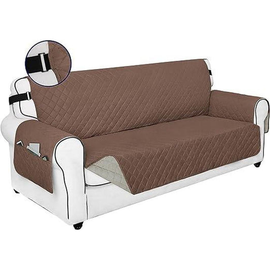 Linen Store Quilted Reversible Microfiber Furniture Protector With Strap - Coral/Taupe