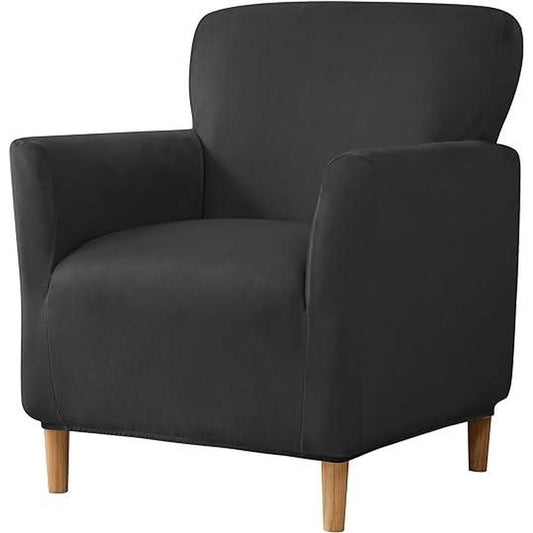 "Milan Jacquard Armchair Slipcover - Stylish Fitted Couch Cover with Soft Stretch Fabric and Non-Slip Design" BLACK