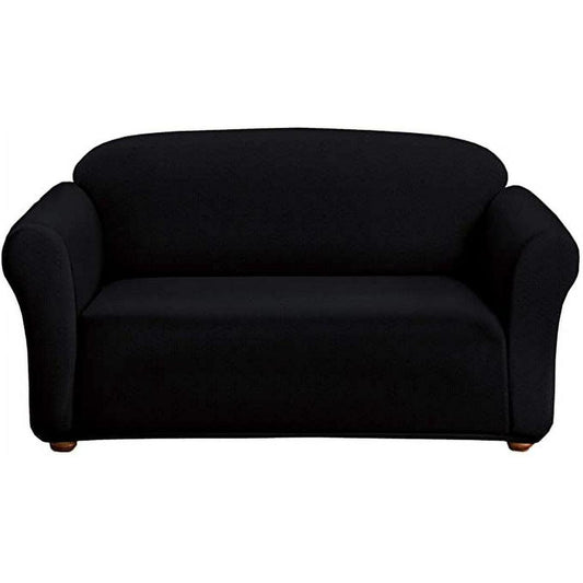Milan Jacquard Loveseat Slipcover - Stylish Fitted Couch Cover with Soft Stretch Fabric and Non-Slip Design - BLACK