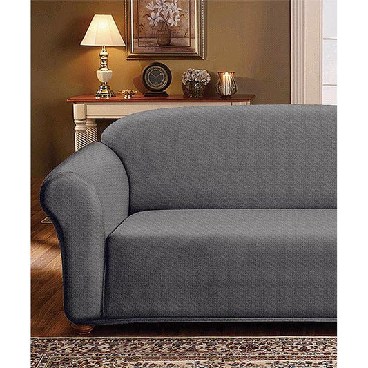 "Milan Jacquard Sofa Slipcover - Stylish Fitted Couch Cover with Soft Stretch Fabric and Non-Slip Design" GREY