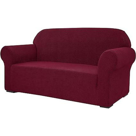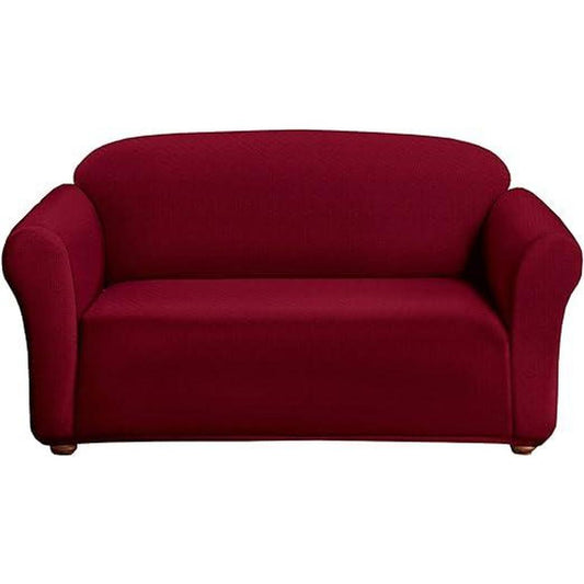 "Milan Jacquard Loveseat Slipcover - Stylish Fitted Couch Cover with Soft Stretch Fabric and Non-Slip Design" BURGUNDY