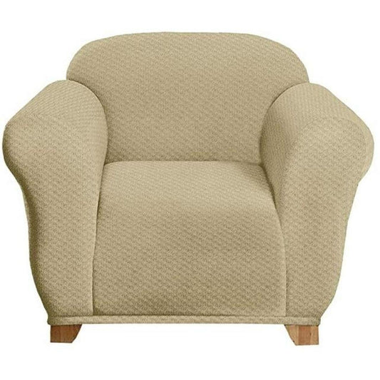 "Milan Jacquard Armchair Slipcover - Stylish Fitted Couch Cover with Soft Stretch Fabric and Non-Slip Design" SAND