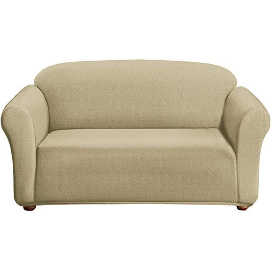 "Milan Jacquard Loveseat Slipcover - Stylish Fitted Couch Cover with Soft Stretch Fabric and Non-Slip Design" SAND