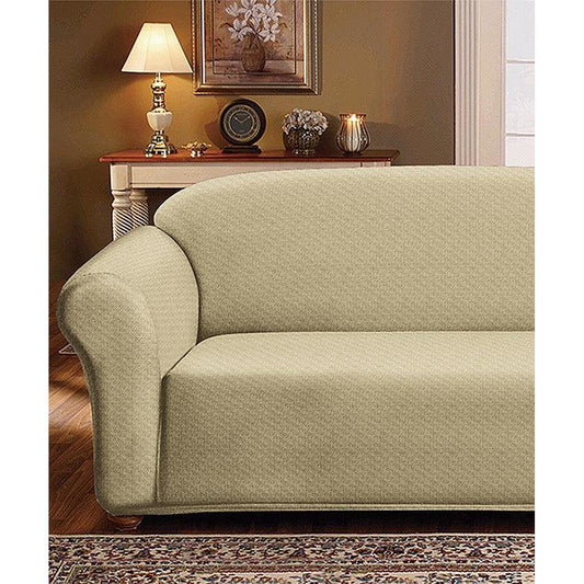 "Milan Jacquard Sofa Slipcover - Stylish Fitted Couch Cover with Soft Stretch Fabric and Non-Slip Design" SAND