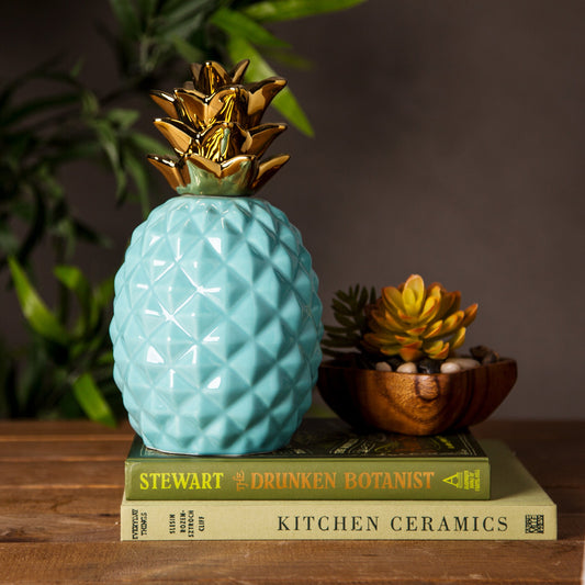 Sold out9"H Aqua Pineapple W/Gld Crown