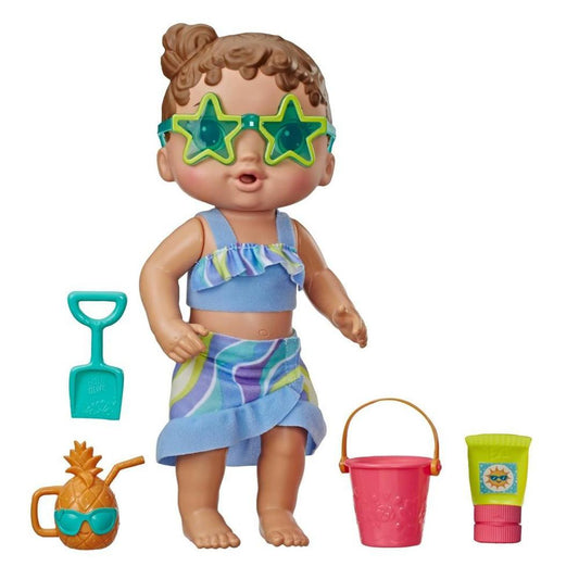 Baby Alive Sun 'n Sand Baby Brown Hair Doll with Beach Outfit and 5 Accessories