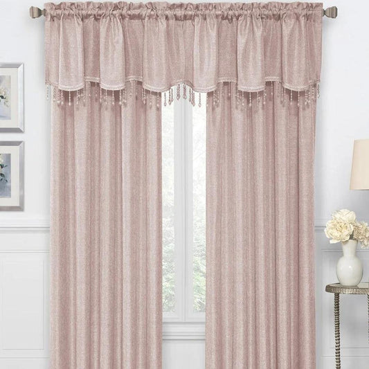 Gina Metallic Jacquard Rod Pocket Valance — Rose
