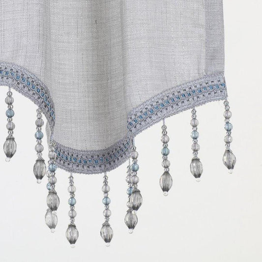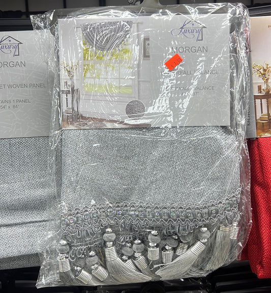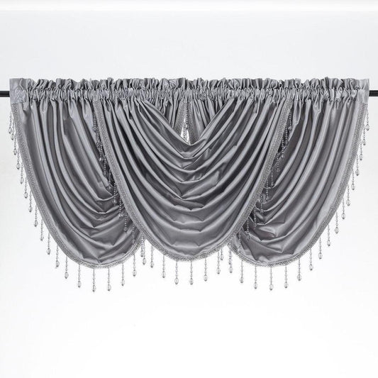 Timeless Elegance: Morgan Grey Rod Pocket Waterfall Valance with Fringe Tassels - 48x37 Inches
