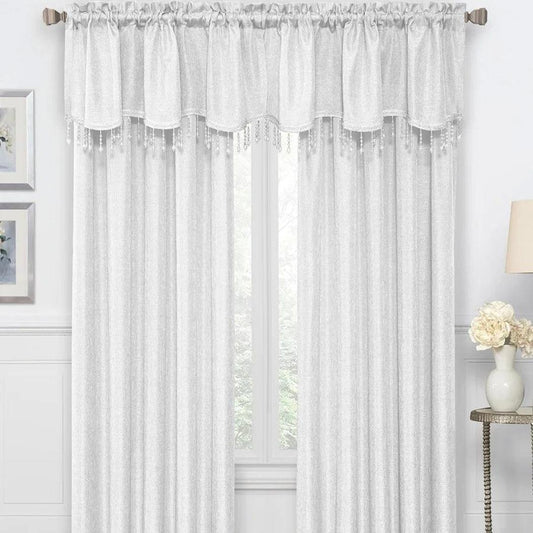 Gina Metallic Jacquard Rod Pocket Valance — White