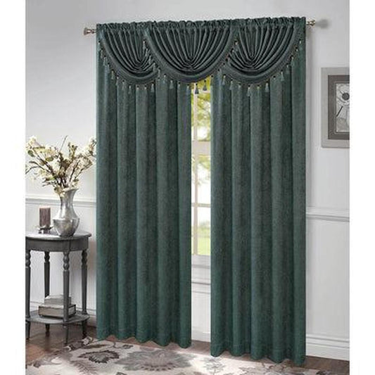 Timeless Elegance: Morgan Green Rod Pocket Waterfall Valance with Fringe Tassels - 48x37 Inches