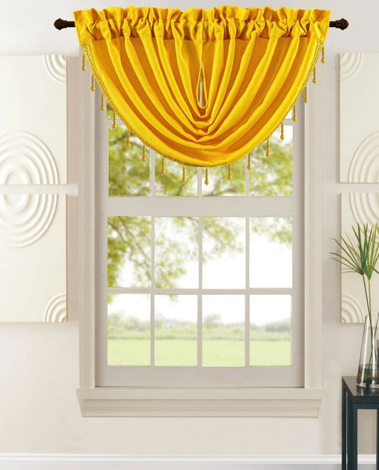 Leah Waterfall Rod Pocket Valance with Beads Yellow 48x37 Inches