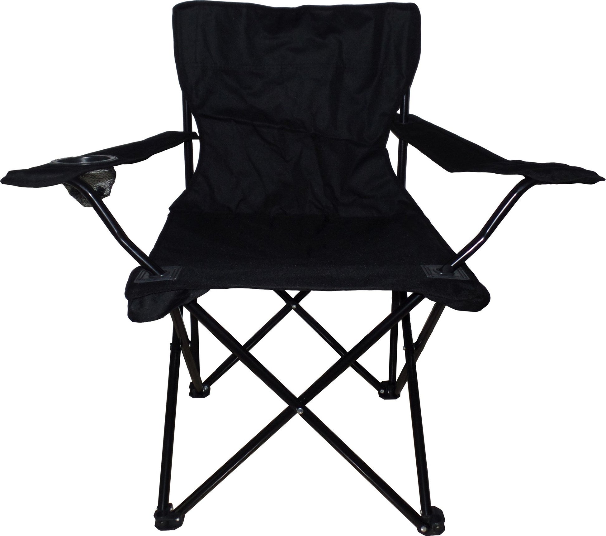 This Black Large Camping Chair provides a sturdy and comfortable spot to relax, ideal for outdoor gatherings and camping trips. It features a heavy-duty steel frame that can support up to 225 lbs, with a tall 21-inch back and a wide 20-inch armrest width for extra comfort. The padded fabric seat and armrests provide extra comfort, and the chair easily folds up for easy transport and storage.