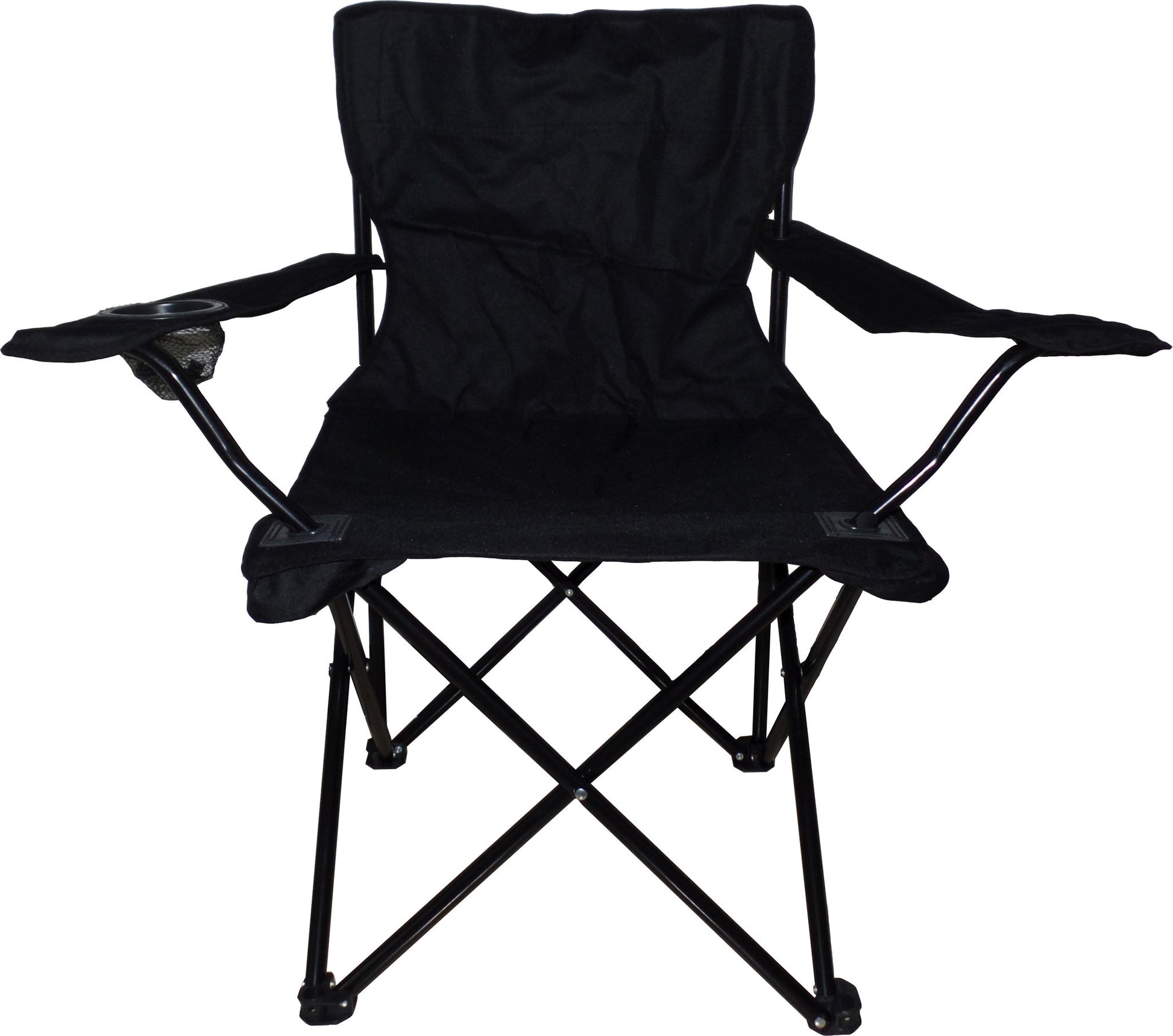 Black XLarge Solid Color Armrest Camping Chair with right hand cup holder