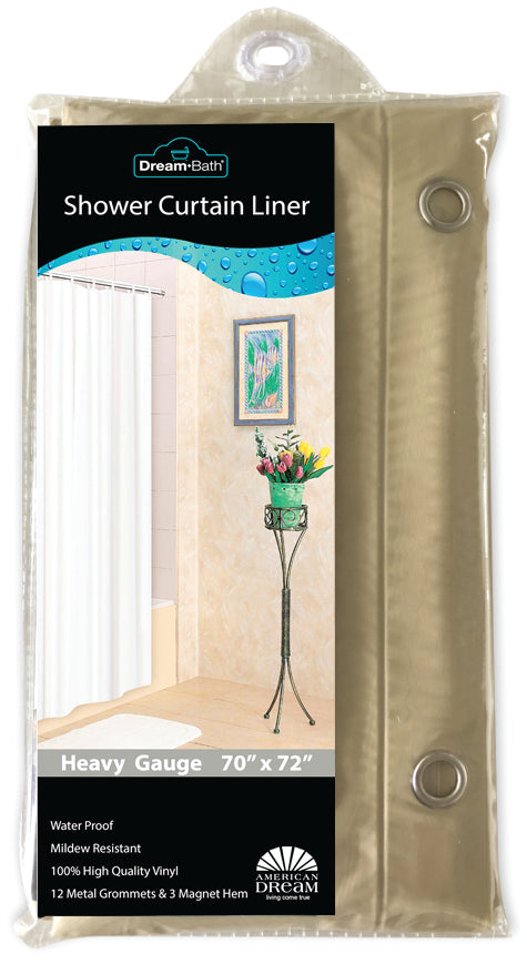 Dream Bath PVC Anti-Bacterial Mildew Resistant Shower Liner, 72x72 Inch, Taupe